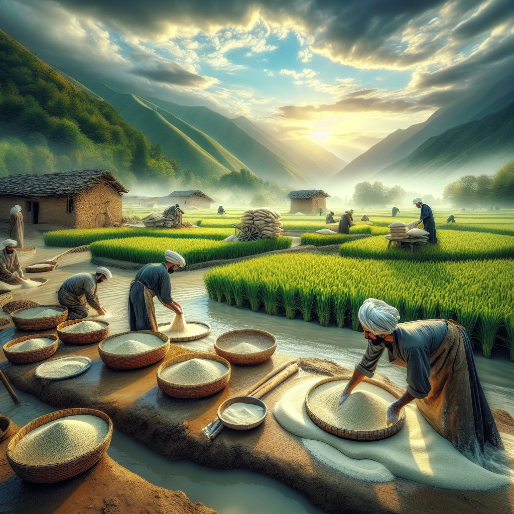 1. **آمادهسازی آرد:** ابتدا برنج بومی پس از برداشت، به دقت شسته و خشک میشود سپس به آرد تبدیل میگردد. درجه آسیاب باید به گونهای تنظیم شود که آرد نه خیلی ریز و نه خشن باشد تا بافت نان حفظ شود.